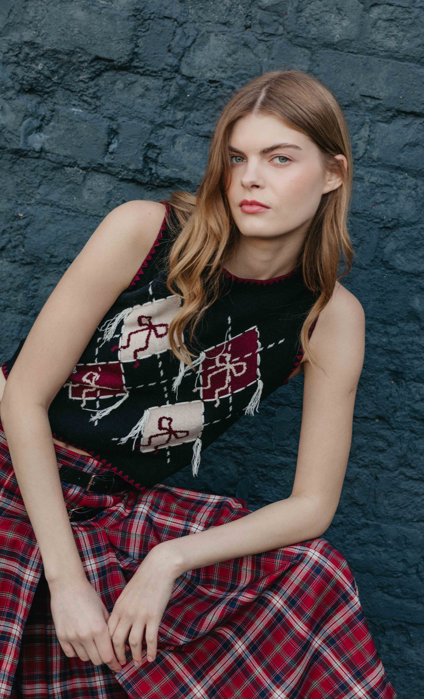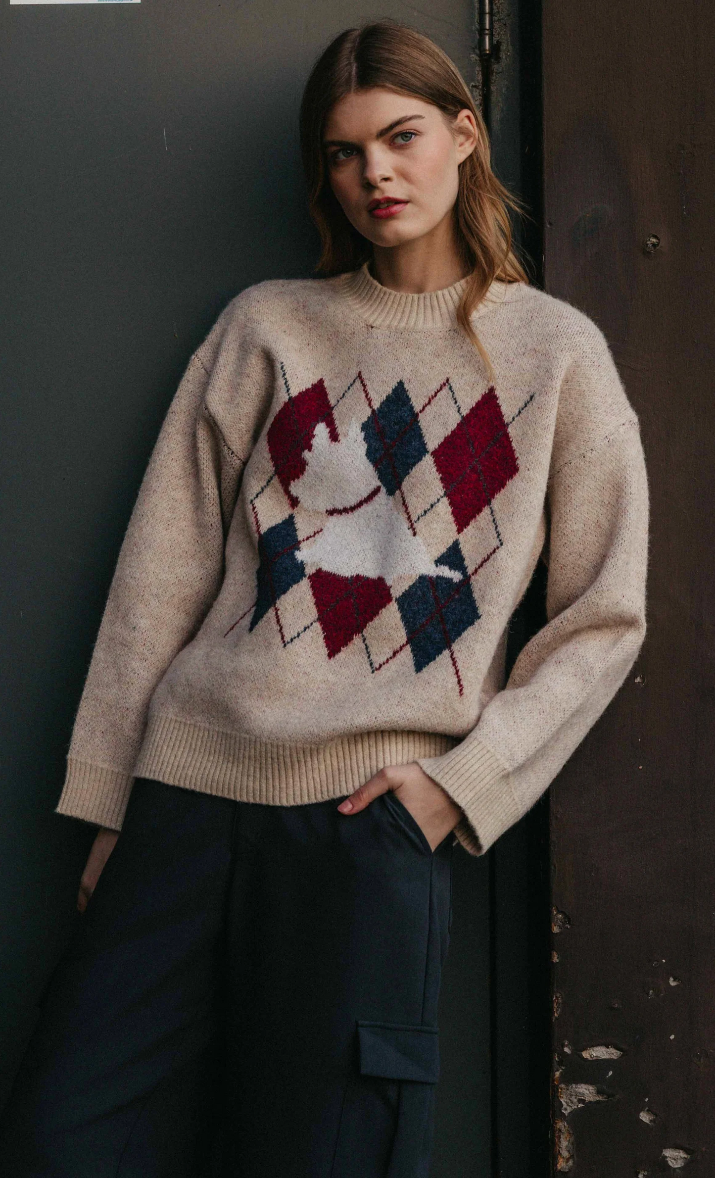 Discover Fair Isle knits, zip-up jumpers, cropped cardigans, slouchy sweaters and pointelle details—designed in-house with hand-drawn patterns and vintage-inspired colour palettes.