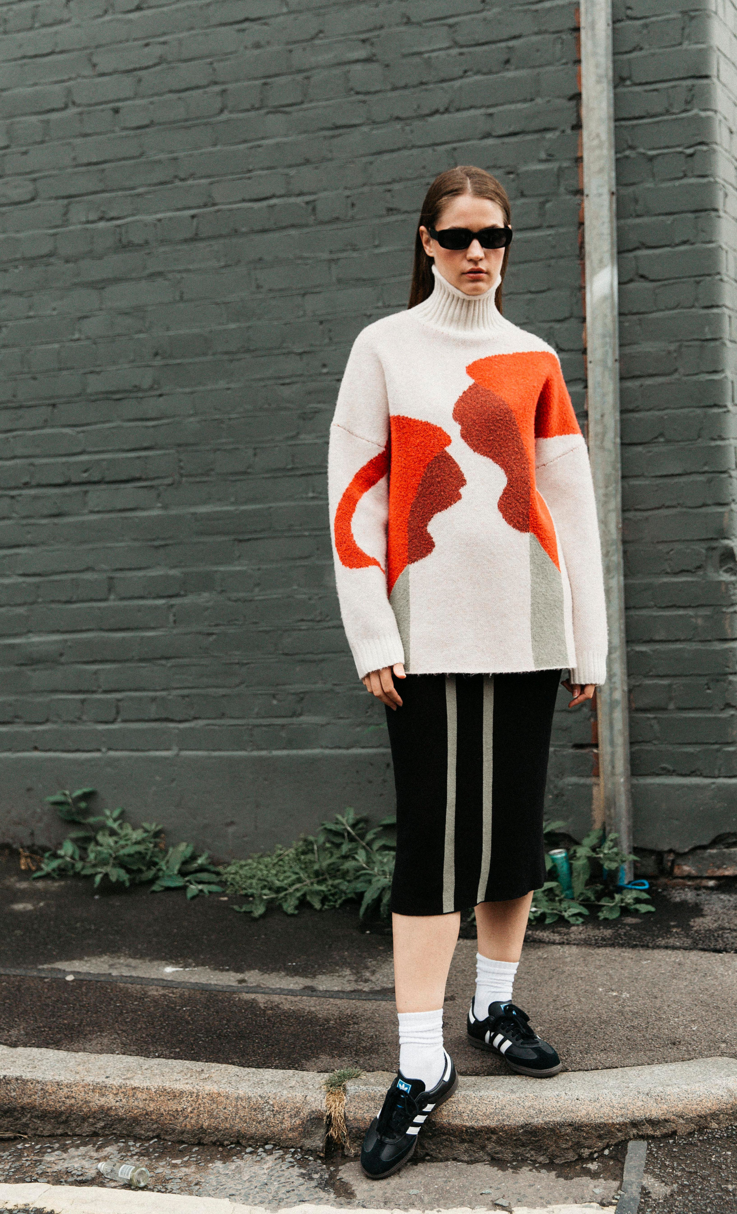 Style with mini skirts, printed dresses or co-ord bottoms for effortless day-to-night layering. RARE LONDON × ANOTHER GIRL—art-led knitwear with personality, made to wear your way.