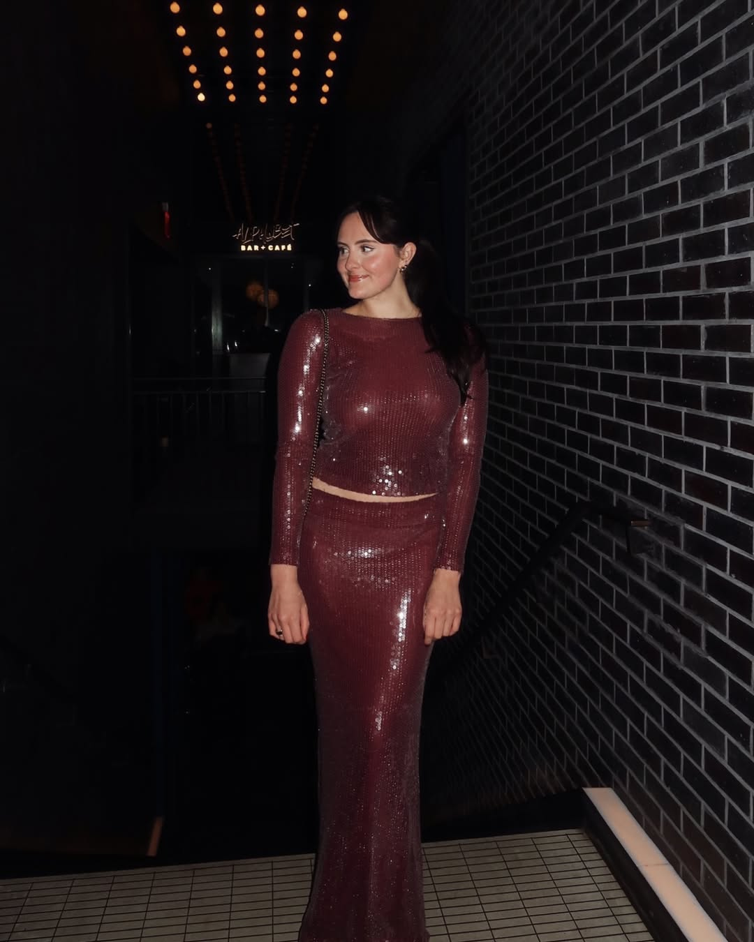 The Burgundy Sequin Long Sleeve Top is a glamorous and eye-catching statement piece perfect for adding a touch of sparkle to any outfit. Covered in sequins, the top sparkles under light, adding texture and dimension. The sequins create a shimmering effect, catching attention and making this top perfect for party or evening wear.