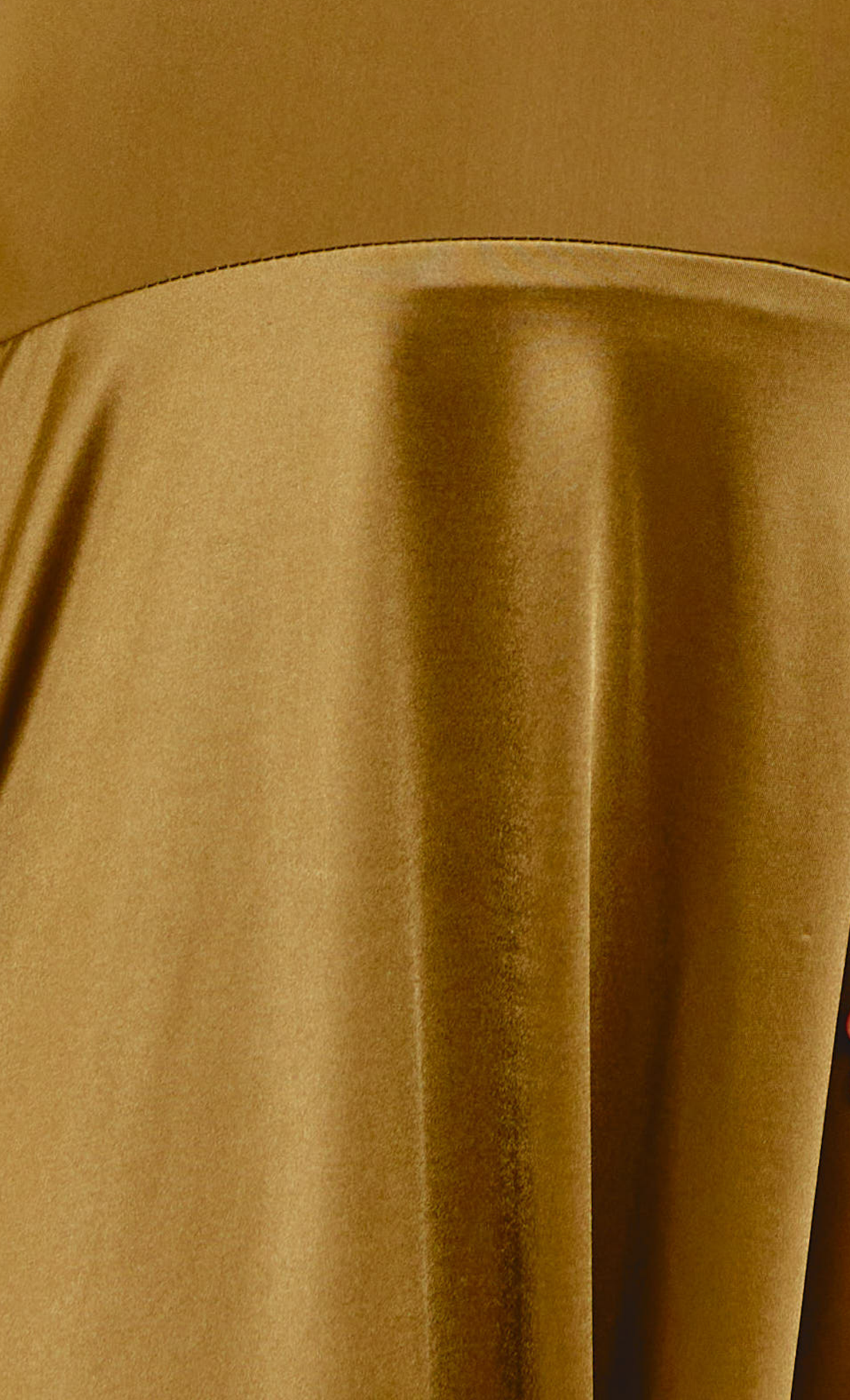 Fluid, modern and designed to make an impact. The Olive Curved Drop Waist Bandeau Maxi Dress is cut in a lustrous olive satin-like fabric that catches the light beautifully, creating depth and movement with every step. The fitted bodice sculpts the silhouette before flowing into a voluminous drop-waist skirt, finished with a dramatic curved seam for added dimension. Strapless and effortlessly sleek, it’s a standout style for evenings, occasions, and moments that call for understated glamour.