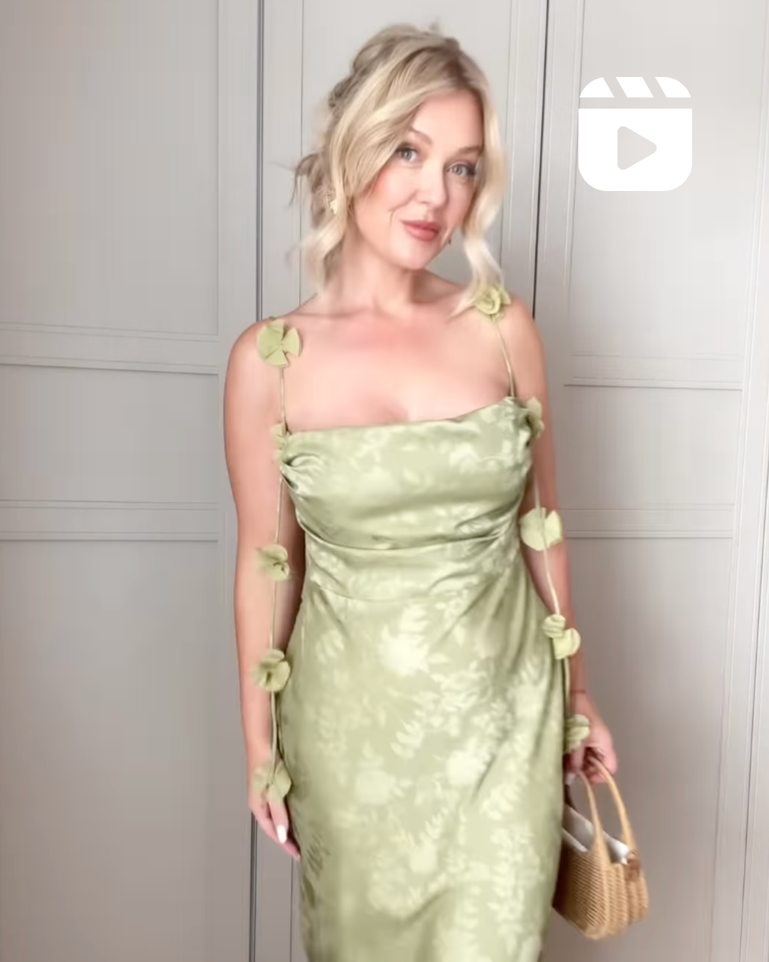 Romantic with a sculptural twist — the Olive Petal Strap Satin Jacquard Maxi Dress is made to turn heads. Designed in a soft olive tone with a subtle floral jacquard finish, it features a flattering cowl neckline and delicate 3D petal straps that trail down the sides for added drama. The silhouette skims the body in all the right places, making it the perfect choice for weddings, summer parties or golden hour dinners.