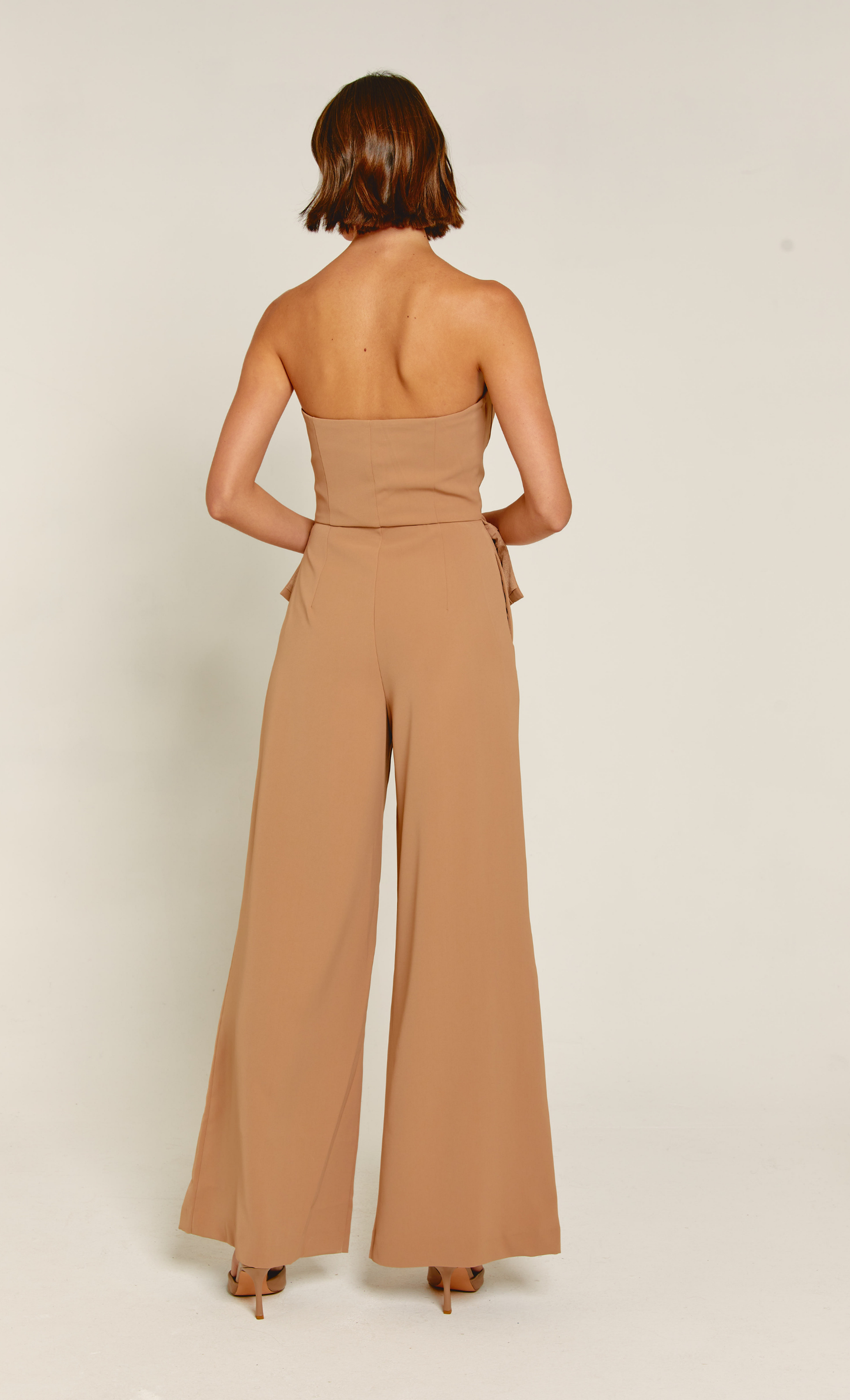 Our smart and stylish bandeau jumpsuit, designed for a simple and sophisticated look with tailored detailing. The jumpsuit features a bandeau neckline with large gold hardware for a classy detail. The perfect wardrobe piece for all your events this season.