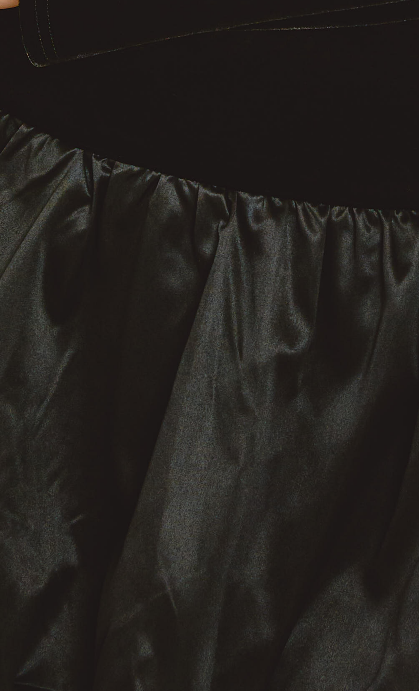 Introducing our latest edition: the Black Puffball Velvet Mini Dress. This stunning new style combines luxurious stretch velvet with a playful puffball silhouette, making it the perfect choice for your next night out. With its chic mini length and elegant design, this dress effortlessly captures the essence of modern glamour.