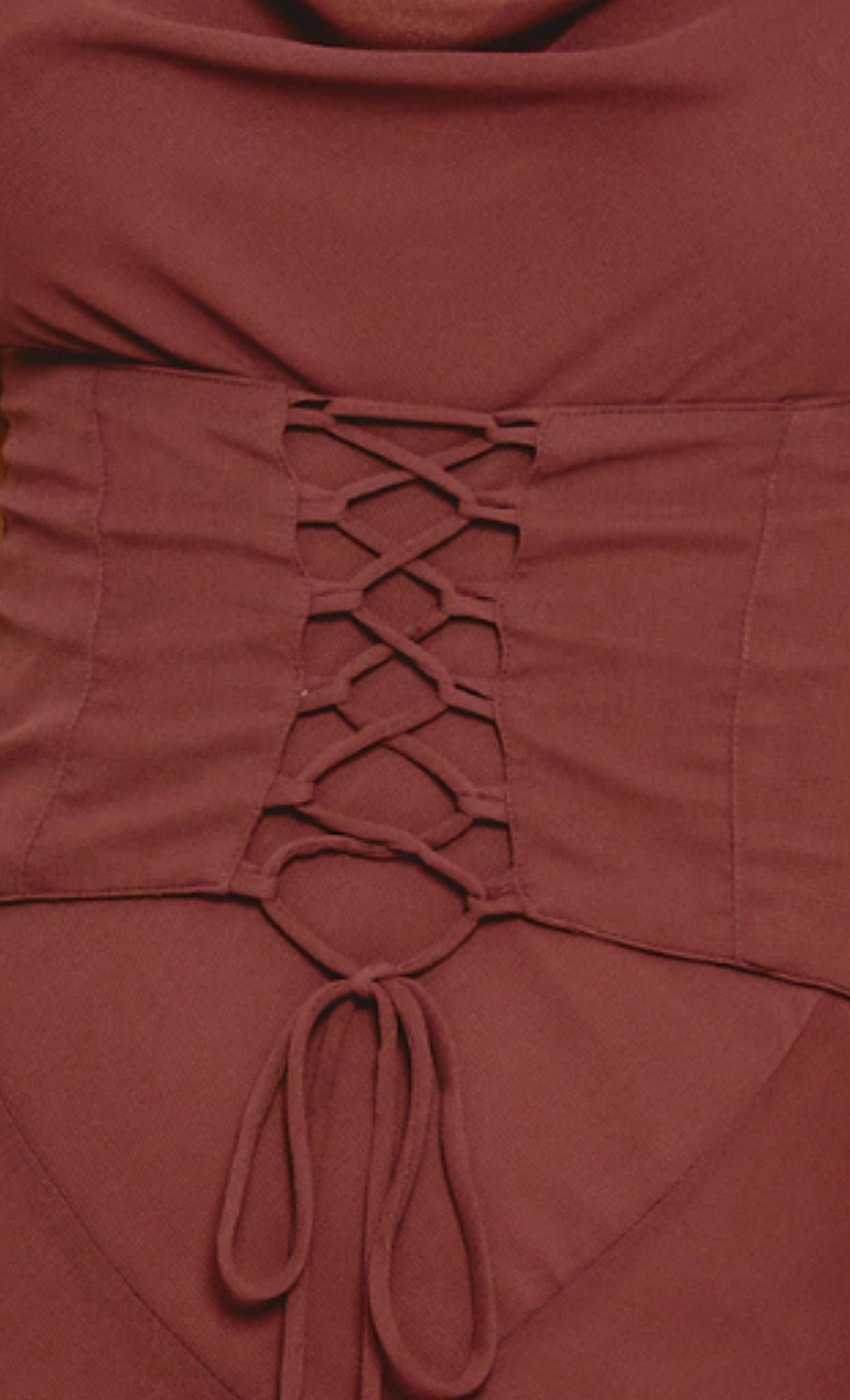 Effortlessly elegant, the Brown Cowl Corset Midaxi Detail Dress is crafted from premium lightweight chiffon for a graceful, fluid drape. Designed with a delicate lace-up bodice that cinches for a custom fit, it features a flattering cowl neckline that adds a touch of softness. The skirt skims the hips before flowing into a gentle flare, creating a silhouette that feels both romantic and refined.