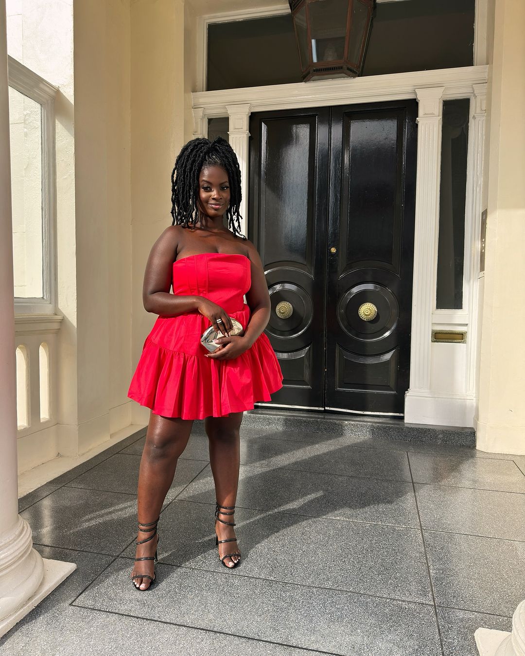 Be Bold, be Rare, in our ruby red tiered mini dress. This playful style features a bandeau neckline, corseted bodice and lace up tie back detail to pull you in and add shape, the tiered skirt is the perfect element to this style making for a fun and glamorous look.