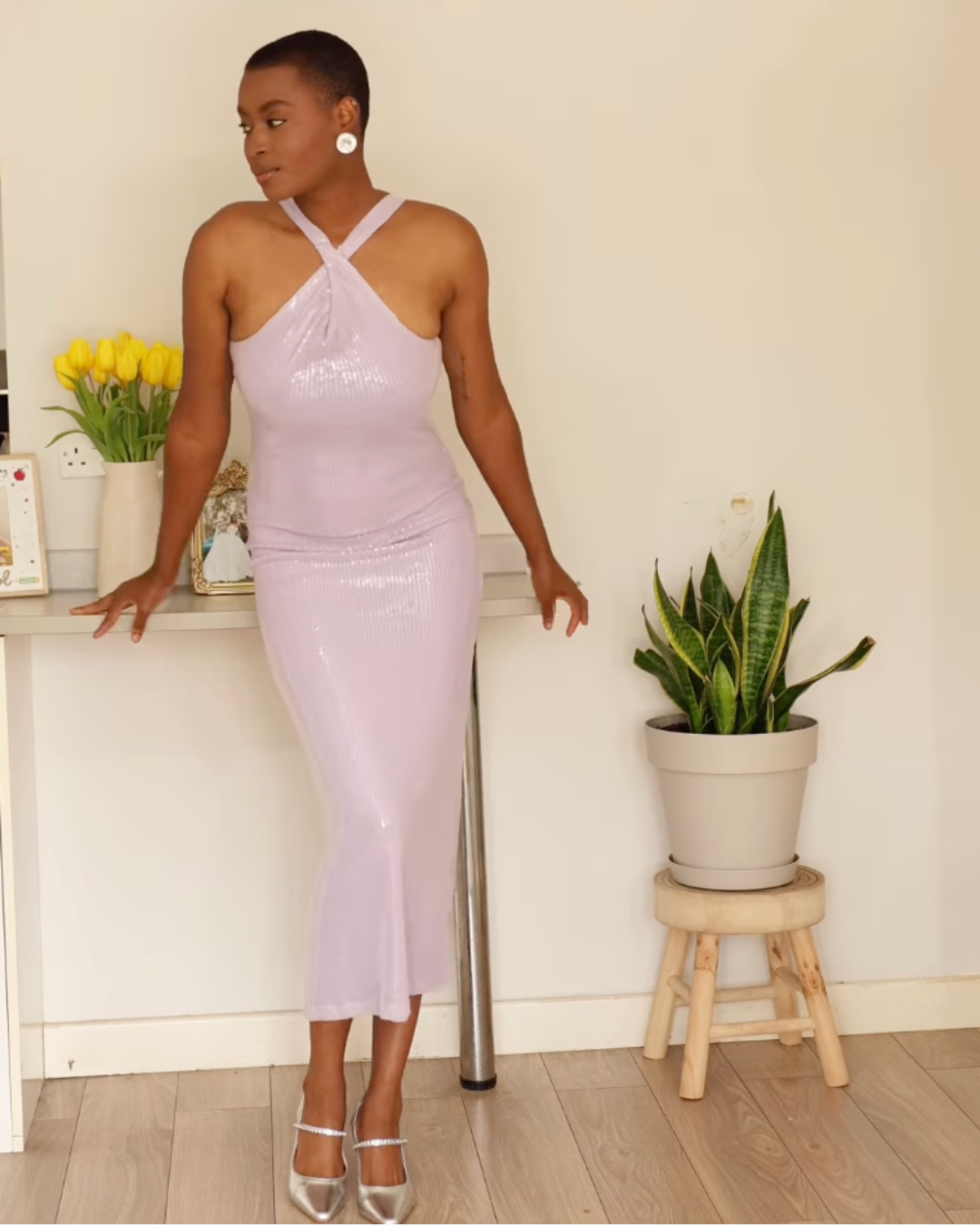 Lilac Sequin Cross Back Maxi Dress