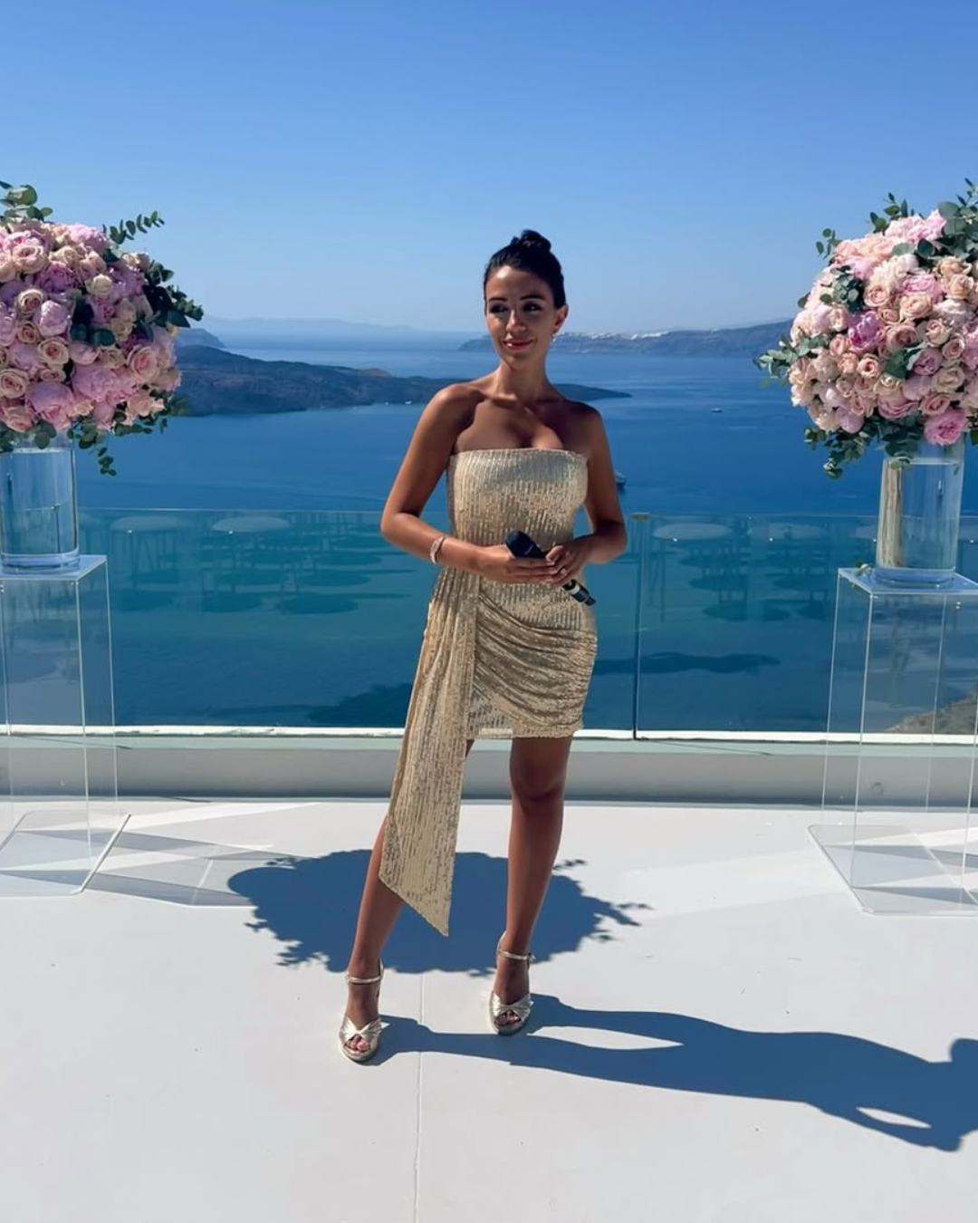 Regular price £44.50Introducing our stunning new Gold Corset Draped Mini Dress ! A captivating blend of elegance and allure designed to make a bold statement at every event you attend. The draping flows effortlessly from the waist, while the boned bodice adds a modern edge. Perfect for date nights, parties or a glamorous night out.