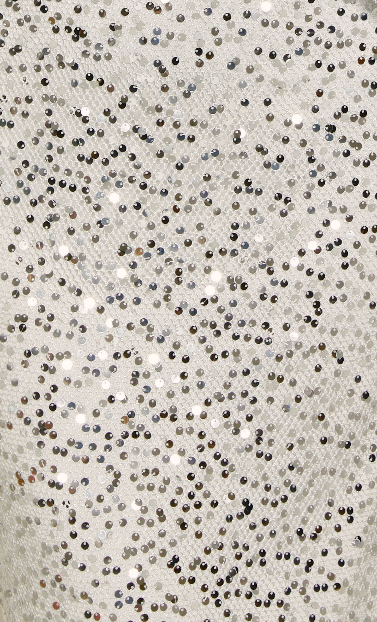 Introducing our beautiful White Long Sleeve Sequin Maxi Dress. This dress features a body sculpting white slip dress (which can be removed), the show stopping over dress is a sheer white fabric with hand sewn silver sequins which beam under the light. This is a transitional dress which can be worn as is or a a sheer cover up.