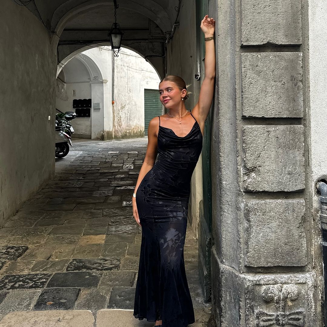 A wardrobe staple for this season, our cowl floral mesh maxi dress in black. This dress is the perfect balance of flowy and figure hugging making you look and feel great ! Cut to a floor sweeping length to flatter, the perfect LBD for all your upcoming events.