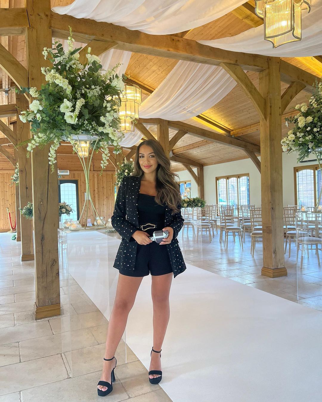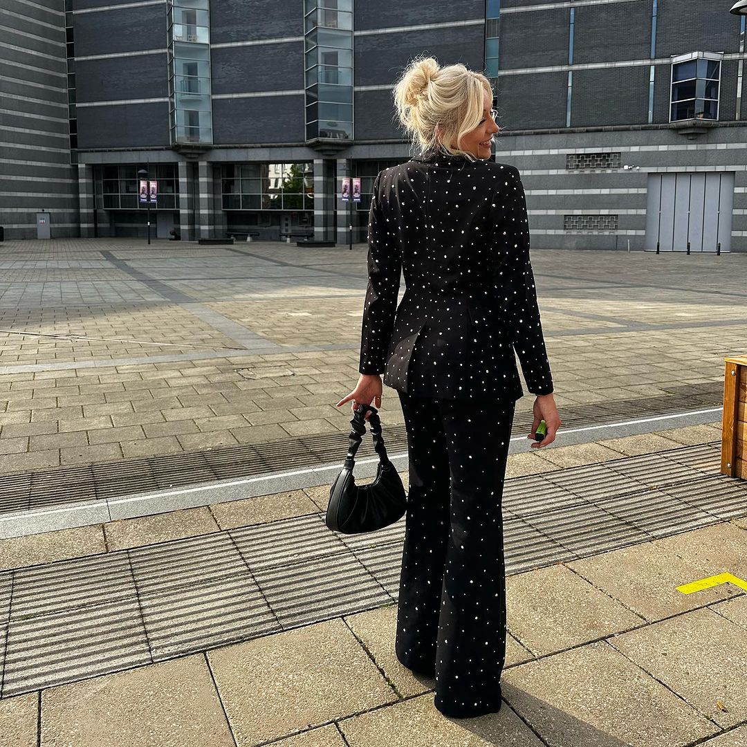 Power dressing at its finest. Inspired by the 1980s feminine take on suits, Rare's blazer has an all-over iridescent embellishment adding a beautiful and elegant finish with enclosed shoulder pads for a fuller shoulder effect. The sculpted, tailored fit emphasises the female form, complete with an inner hook and eye fastening. Fully lined. Style with our matching embellished flared trousers for the ultimate tailored look. As seen on Rebekah Vardy on ITV