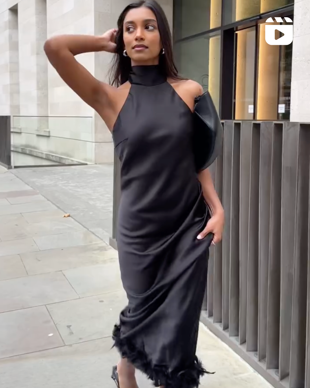 Our Elegant and show-stopping High Neck Feather Maxi Dress is back, now in a stunning new colour ! This dress is draped and cut to create a flattering, effortless silhouette. It features a chic high tie-back neckline and a removable feather trim for added versatility and a touch of luxury. Whether you're looking for a sophisticated or eye-catching ensemble, this Maxi Dress has you covered.