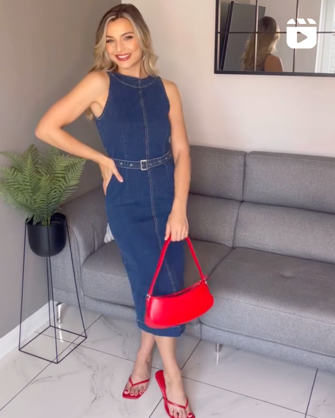 Regular price £34.00Our latest wardrobe staple piece is our Midaxi Shift Dress. Designed in a premium denim poly cotton blend for stretch and comfort. The dress features a rounded neckline a belted waist and is cut to midaxi length to flatter.