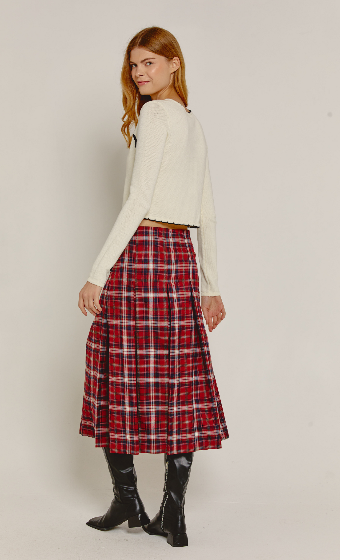 Classic tartan with a rebellious twist. Our Red Tartan Buckle Detail Midi Skirt features an asymmetric wrap front with double buckle fastenings for a modern take on the traditional kilt. Crafted in a soft woven fabric with a bold red check pattern, it sits low on the waist and falls to a flattering midi length. The pleated design adds movement and structure, making it perfect for dressing up or down.