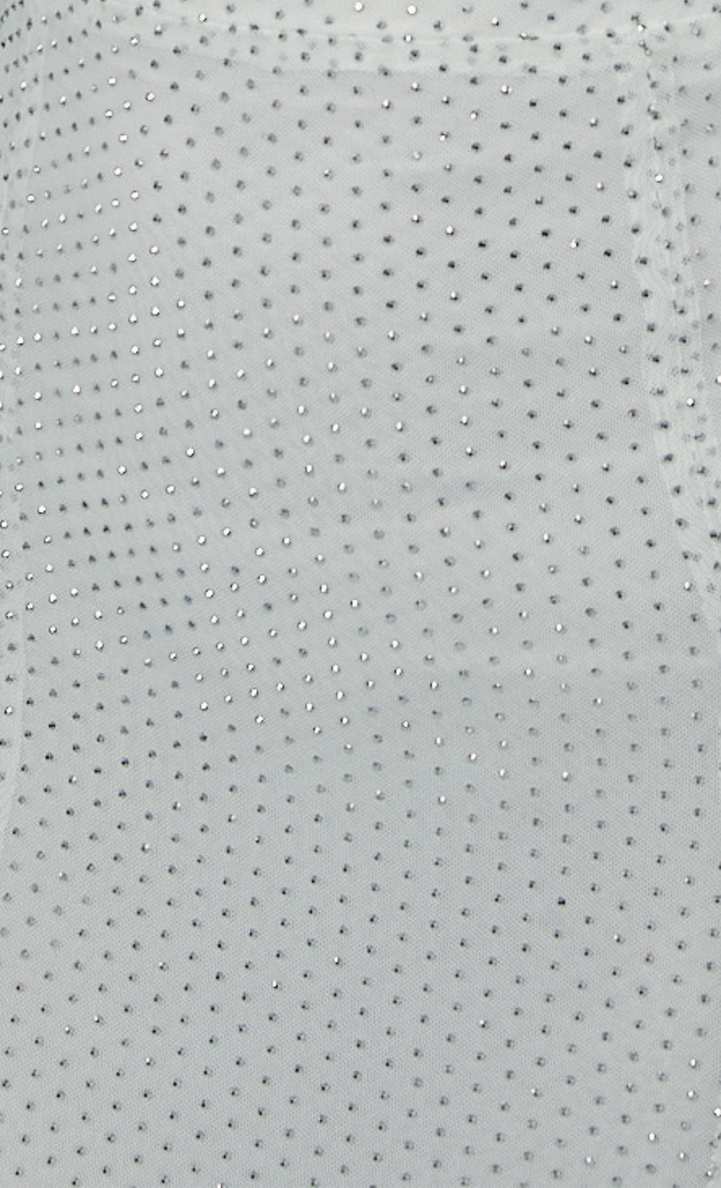 Designed to dazzle, the White Rhinestone Cowl Neck Maxi Dress is your go-to for high-impact glamour. Cut from a fluid stretch fabric and adorned with all-over rhinestone detailing, this dress catches the light from every angle. The softly draped cowl neckline and delicate spaghetti straps create an elegant upper silhouette, while the fishtail-style hem brings movement and drama to every step.