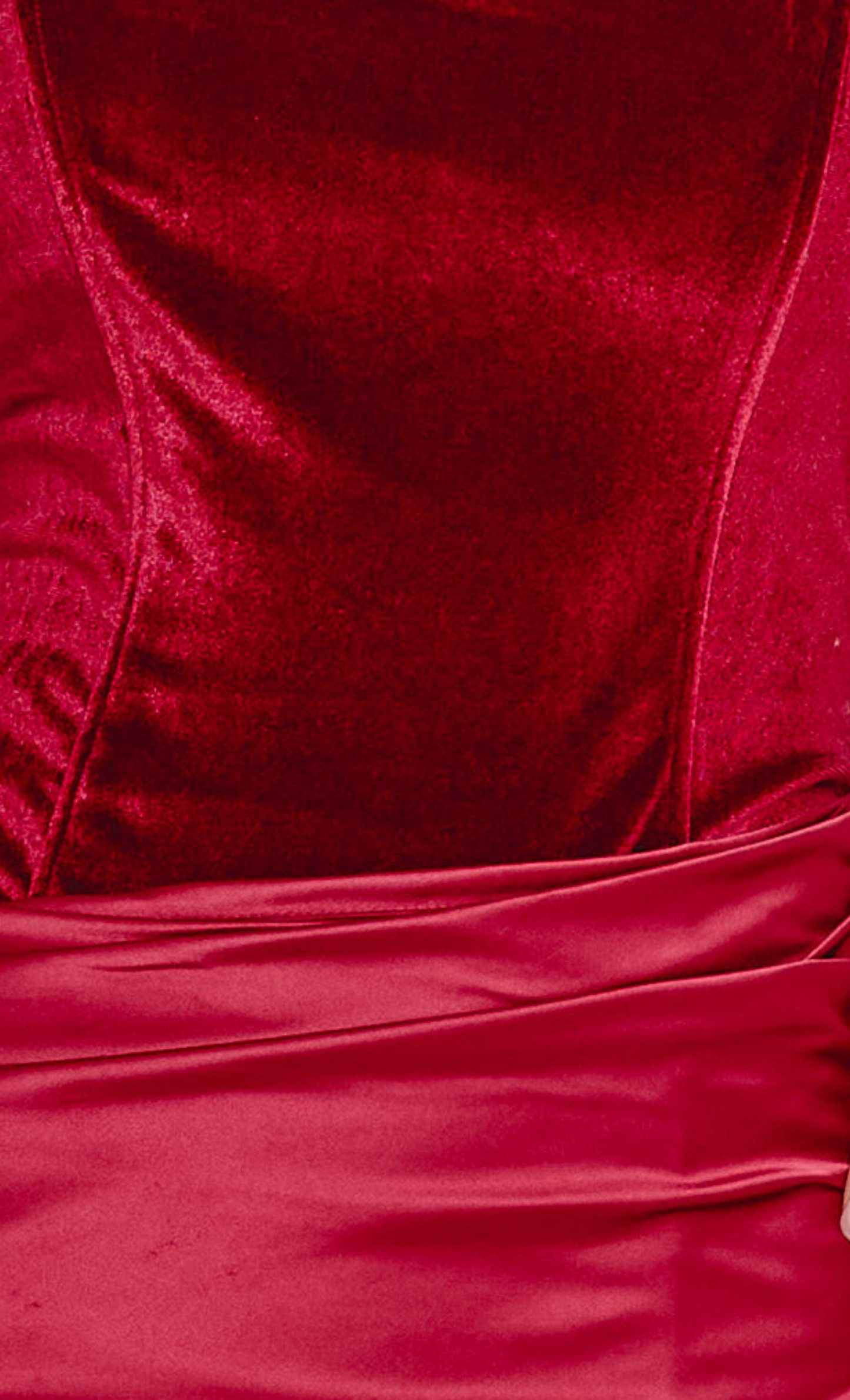 Regular price £90.00The Red Velvet Corset-Style Maxi Dress is made for entrances. A structured, boned velvet bodice sculpts the waist and bust, while the sleek satin skirt skims over the hips and falls to a soft fishtail hem that pools at the floor. Delicate spaghetti straps and gentle ruching at the waist add shape without stealing focus from the rich red fabric, creating a silhouette that feels dramatic, feminine and unapologetically glamorous.